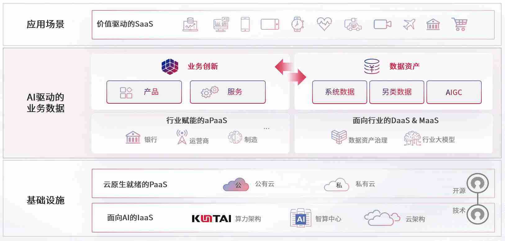 数字时代,,围绕企业数字化转型的关键要素,,,赏金国际数码开创性的提出数云融合战略和技术体系框架,,,,着力在云原生、、、数字原生、、、、AI原生和信创产业上架构产品和服务能力,,,,为处在不同数字化转型阶段的快消零售、、、、汽车、、金融、、、医疗、、政企、、、教育、、、、运营商等行业客户提供泛在的敏捷IT能力和融合的数据驱动能力,,,构建跨界融合创新的数字业务场景和新业务模式,,,,助力企业级客户建立面向未来的核心能力和竞争优势,,全面推动社会的数字化、、、、智能化转型升级。。。