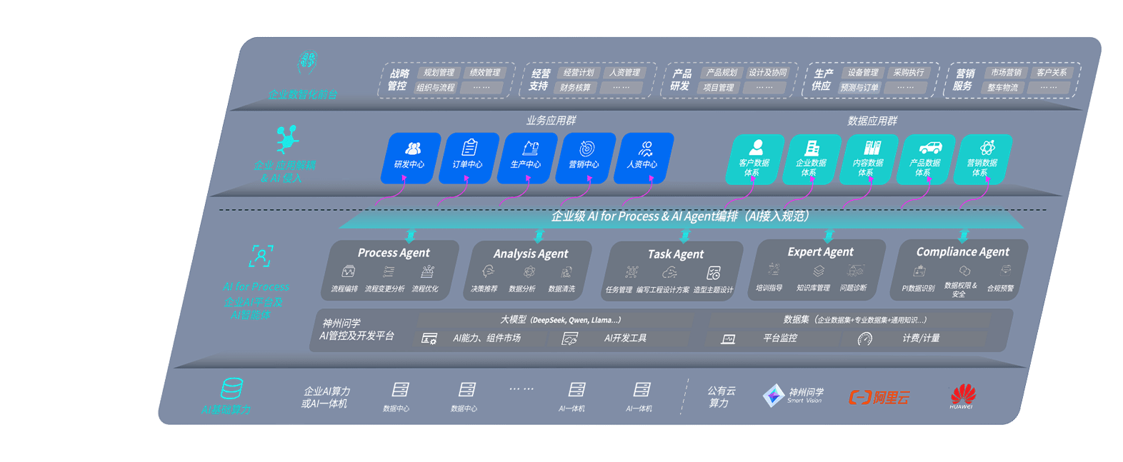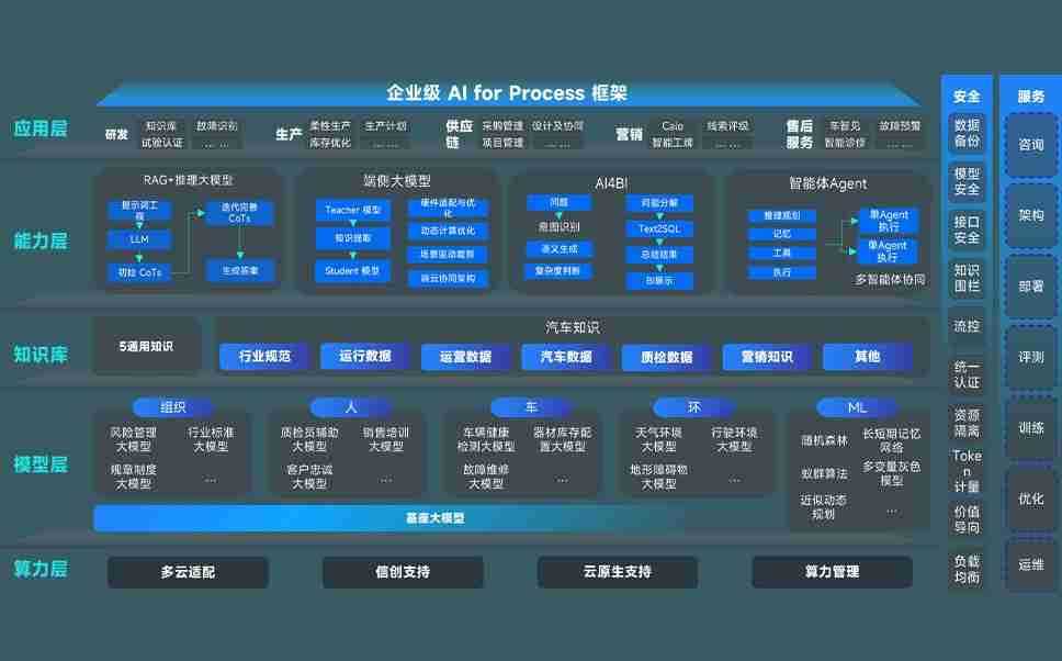 端到端的一站式AI工作空间深度融合了从企业战略规划到日常经营的全流程业务板块,,,,定向解决车企内部领域多、、、部门多、、链条长、、场景碎片化等难题,,,支持车企快速构建以AI为核心的生产力写作体系,,,,实现任务执行与AI能力的无缝集成与交互